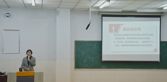 12月5日晚7:00,pa电子官方网站在E210教室举办毕业生就业指导讲座,为即将步入社会工作的同学们普及了就业政策、求职的基本知识以及面试的相关技巧。本次讲座由学校就业处李旭老师主讲。