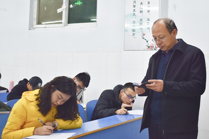 2019年12月3日晚7:00——8:30,pa电子官方网站于教学楼B楼、E楼举办了2019级新生校规校级考试。本次考试由党支部、团学会学生干部担任监考人员。pa电子官方网站党委书记陈复昌、团总支书记邢珊珊、李特和19级辅导员老师作为巡考人员,亲临现场查看学生考试情况,pa电子2019级全体新生参与了此次考试。