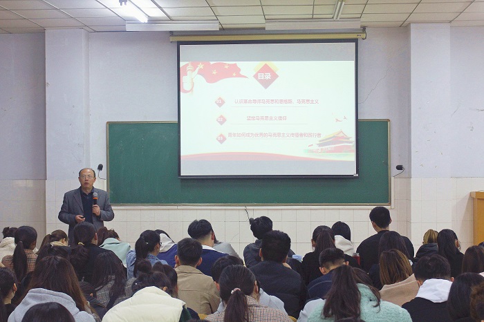 在本次培训中,陈书记首先强调,青年是国家的未来、民族的希望,党和国家历来高度重视青年、关怀青年、信任青年,始终坚持把青年作为党和人民事业发展的生力军,青年一代有理想、有本领、有担当,国家就有前途,民族就有希望。理想指引人生方向,信念决定事业成败,广大青年要坚定崇高的理想信念,志存高远,勇于担当时代使命。然后,陈书记讲述了青年马克思与青年恩格斯的故事,介绍了马克思主义的基本内容,讲述了在马克主义指导下,中国共产党将马克思主义与中国的革命、建设和改革实践紧密结合带领中国人民实现站起来、富起来和强起来的伟大飞跃、波澜壮阔的伟大历程和取得的辉煌成就,强调这些伟大实践对我们的启示:一是一定要坚持马克思主义的指导地位和不断推进马克思主义中国化、时代化和大众化,二是一定要坚持理想信仰不动摇,始终不渝地为实现中国特色社会主义共同理想和共产主义远大理想而奋斗。最后,陈书记勉励大家从坚定理想信念、厚植爱国主义情怀、加强品德修养、增长知识见识、培养奋斗精神、增强综合素质几个方面上苦下功夫,努力成为担当民族复兴大任时代新人,做新时代马克思主义的践行者和传播者,牢记初心使命,为实现“两个一百年”奋斗目标、实现中华民族伟大复兴的中国梦注入强劲、持久的青春动力。