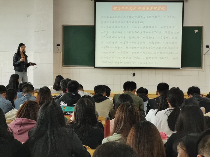 会上,孙德芝博士和副院长杨霞分别详细介绍了湖北工业大学经济管理学院的基本情况;对会计、金融专业硕士研究生招生的要求;报考、调剂的注意事项;收费、奖助政策等方面做了详细的讲解;就同学们应该怎样复习备考等问题做了详细的指导。最后对现场同学提出的疑问做了解答。
