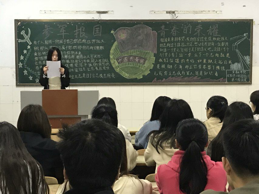 新一代青年团员,有义务亦有担当,身负责任与使命,为国为民砥砺前行。按照校武装部和校团委的通知工作安排,金融学院于4月28日晚在教学楼B座教室,组织各班团支部举办“参军报国,青春的荣耀”主题团课。