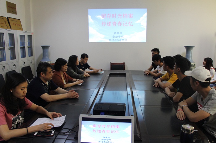 为普及档案知识,纪念国际档案日,让大学生充分体会档案“留史、存凭、服务、育人”的特殊价值, 2018年5月30日下午13:30,校档案馆联合金融学院举行了主题为“留存时光档案,传递青春记忆”青春档案活动的启动仪式。校档案馆馆长崔鲜花、金融学院党总支书记胡红林、团总支书记李特、档案馆各位老师以及2015级班长、团支书、寝室长参加了此次活动仪式。