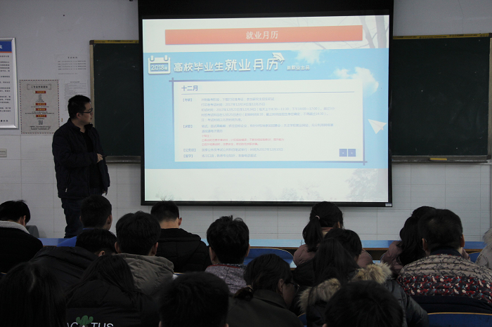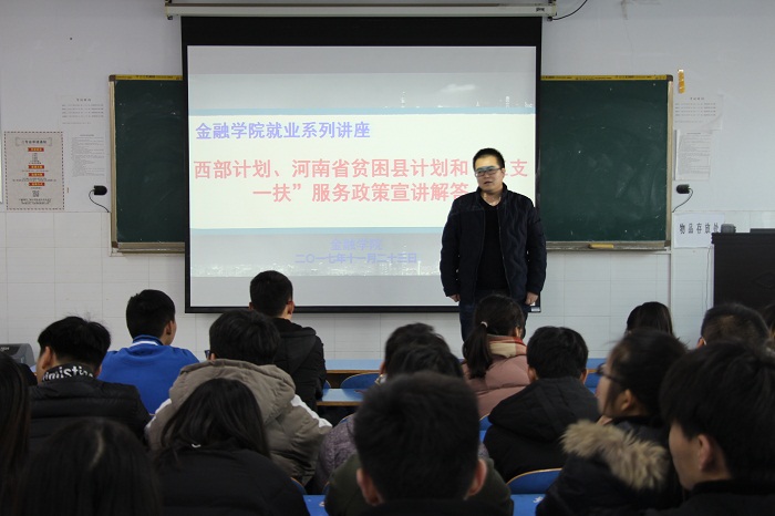 范老师的精彩讲座囊括了“西部计划”、“河南省贫困县计划”、“三支一扶”等就业服务政策介绍,并针对目前的就业形势以及如何面对职场就业择业进行了深入的讲解。他根据往年就业信息的变化情况作对比解析,从有利因素和不利因素两方面加以分析,且从心理准备、知识准备、能力准备和就业信息获取等进行了全方面的指导,使毕业生对当前的就业形势有了清醒的认识。