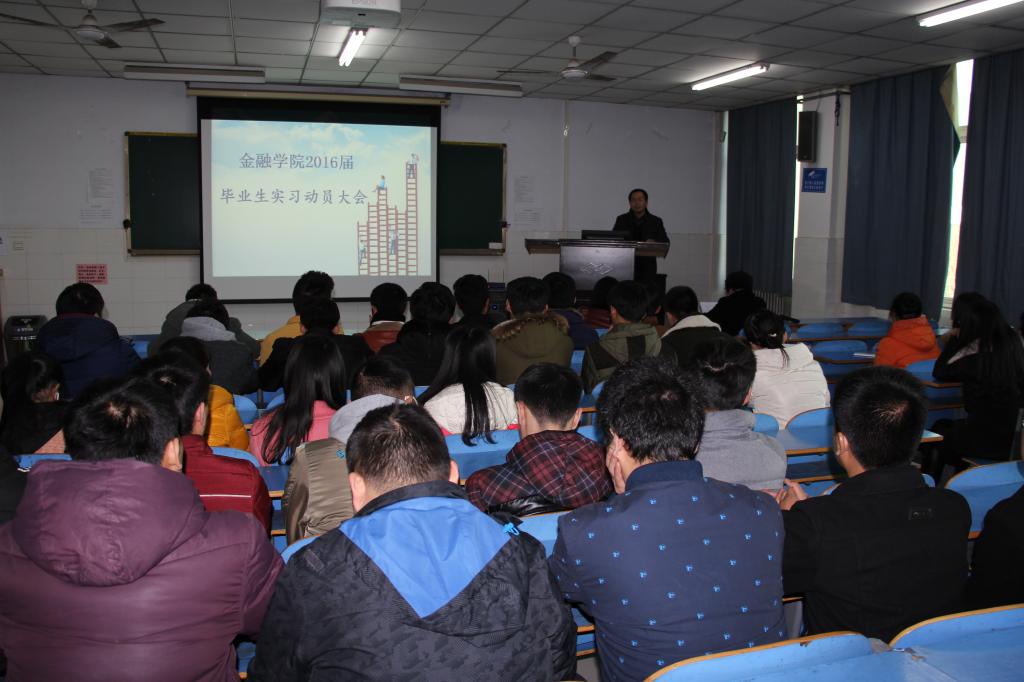 首先,副主任李琰宣布了金融学院2016届毕业生实习工作方案,并强调了毕业论文的相关事宜,要求同学们要善于利用时间,提前做好准备。随后,副书记贾宪军发表了实习动员讲话,强调了毕业实习期间的注意事项,并对各项毕业生工作问题进行详细讲解。同时提出要求,希望同学们能够培养自身综合素质,明确自己的学生和工作人员的双重身份,处理好学习与工作的关系,圆满完成毕业实习任务。