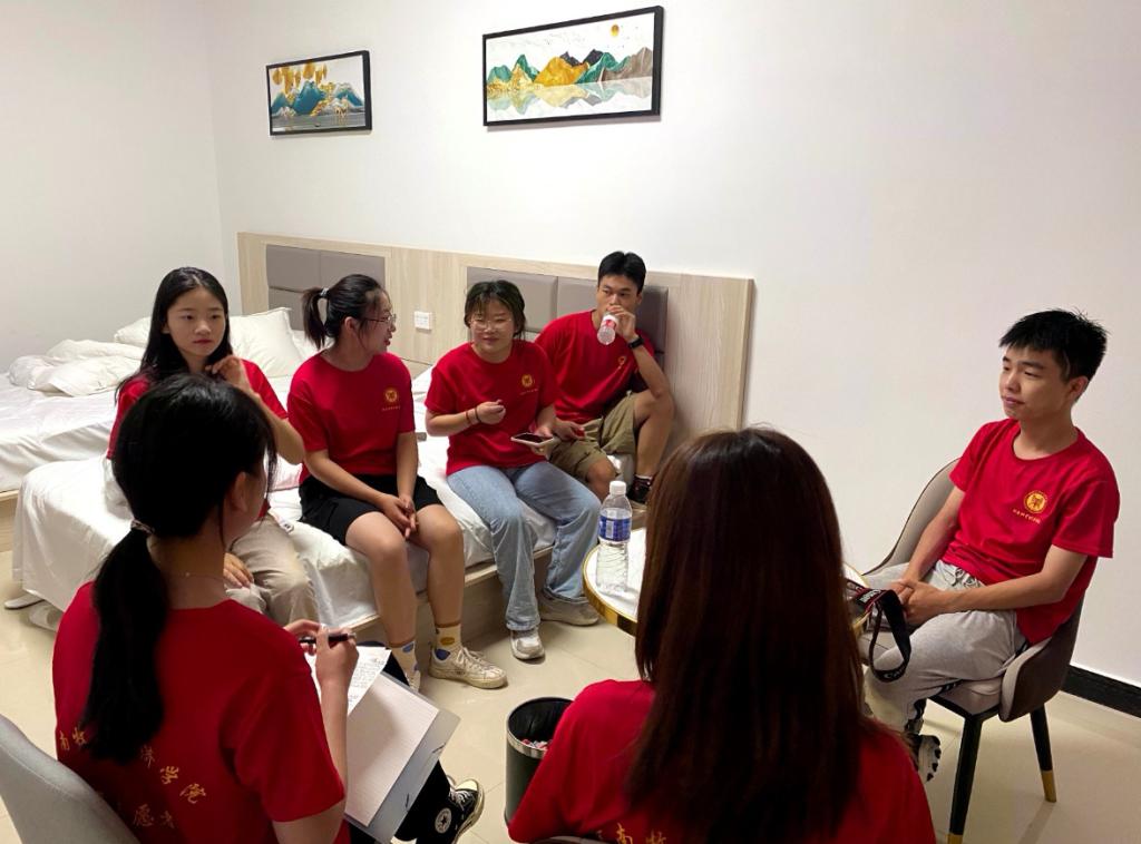 深夜,追光队队员聚在一起对今天的活动做了总结,每位队员都谈论了自己今天的收获和不足之处,并对明天的行程安排再次进行了具体的规划。当突发情况发生时,要求每位队员随机应变。只要大家团结一致共同努力,明天就会做得更好!
