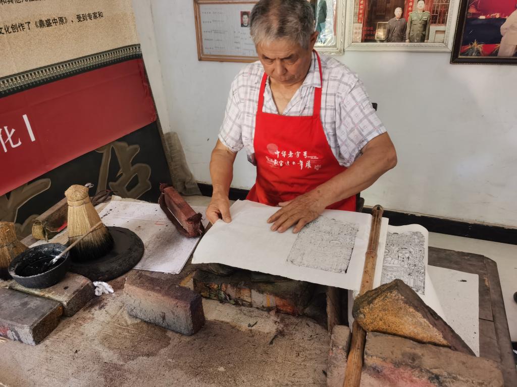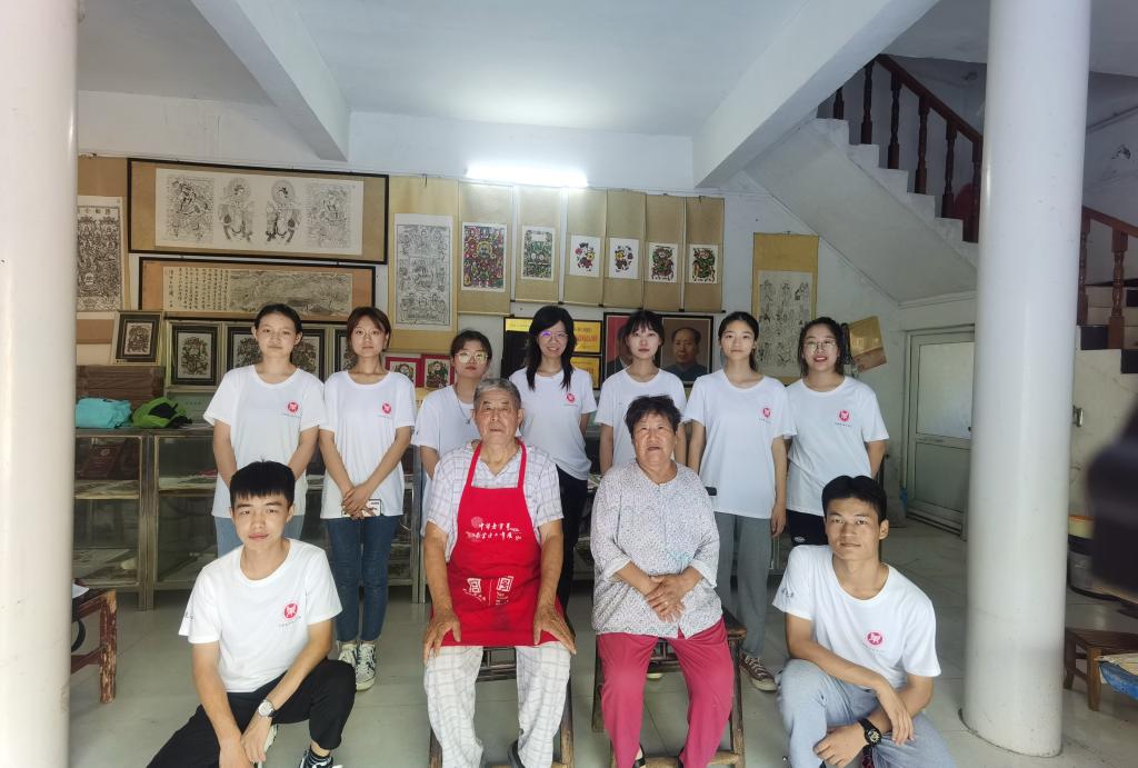 下一站,追光实践队队员们来到年画一条街参观了木版年画,并拜访了木版年画传承者——尹国全先生。尹国全老先生是开封县朱仙镇年画著名老字号“天成老店”第五代传人,自幼学艺,全面掌握了木版年画的雕版、套印技术和植物染料调配炮制绝技,改革开放以来,朱仙镇木版年画社发展的作品,几乎都是他翻刻的新版,对朱仙镇木版年画的生存、发展起到了关键作用。尹师傅为队员们展示了由他亲手制作的木版年画并为实践队队员们讲解年画历史,使队员们受益匪浅。“门神门神骑红马,贴在门上守住家,门神门神扛大刀,大鬼小鬼进不来......”这是一首流传久远的民谣,而民谣里唱的“门神”就是朱仙镇木版年画。朱仙镇木版年画距今已有一千多年的历史,诞生于唐,兴于宋,鼎盛于明,历史悠久,被誉为中国木版年画之“鼻祖”。朱仙镇木版年画中的人物各个都是“头大身子小”,充满喜剧效果。2006年,朱仙镇木版年画被列入首批国家级非物质文化遗产名录,古老的艺术再次受到的关注,木版年画市场重新恢复了生机。如今,来到朱仙镇的人们,不仅可以欣赏和购买,还可以体验一把古老的“印刷术”,感受传统手工技艺的独特魅力。采访参观临近尾声,尹先生热情的招待实践队员们,为他们准备西瓜解暑并赠送由自己亲手制作的木版年画作为礼物。此行,队员们感受到朱仙镇木版年画魅力同时也体会到了朱仙镇人民的热情。年画作为中国独有的一朵艺术奇葩,是我国古老的民间艺术精华。作为当代大学生,我们更应该以实际行动让传统非遗文化继续传承下去。