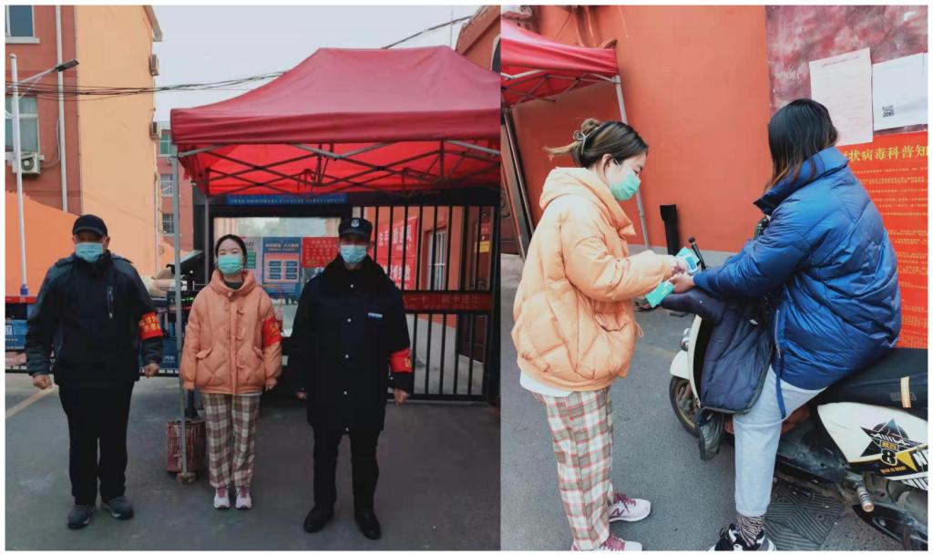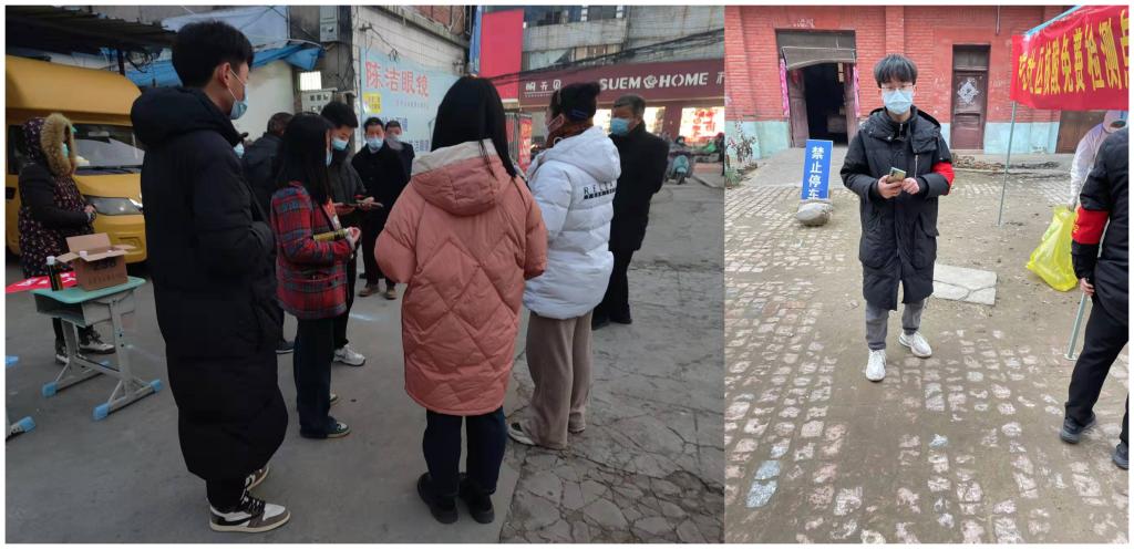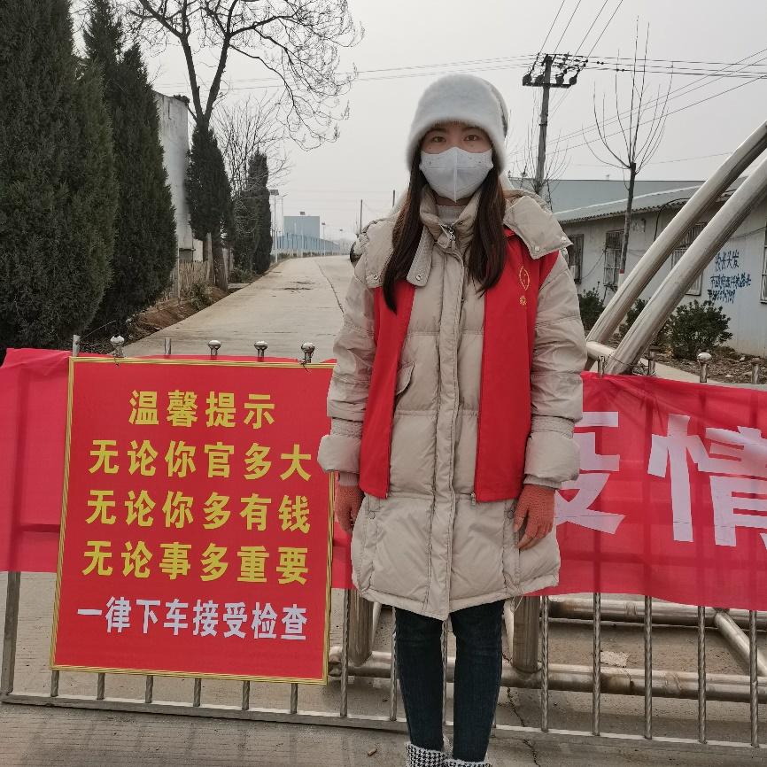 为响应国家对疫情防控的号召,为国家和社会贡献自己的一份力量,孙冰倩同学主动参加了家乡洛阳疫情防控的志愿者活动。每天早上她和其他志愿者在村庄主要交通要道的防控点工作,对来往的非本地车辆拦截、查看健康码行程码、测量体温并登记。同时,她也参与排查返乡流动人员,认真记录每一个从中高风险地区返乡的人员并上报采取相应隔离措施。“病毒虽可怕,但我们坚信,在党和政府的领导下,大家团结一心、众志成城,一定能够早日战胜疫情。”