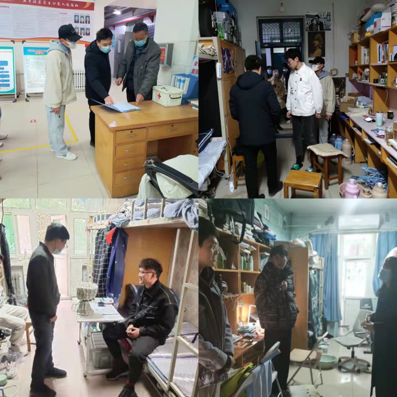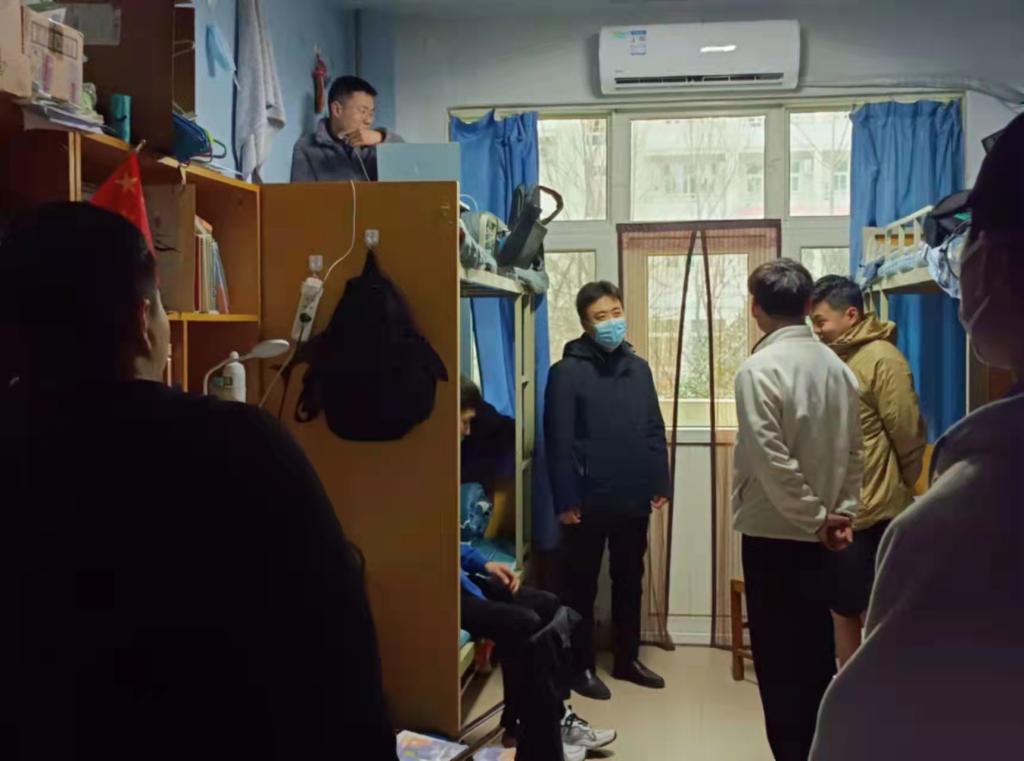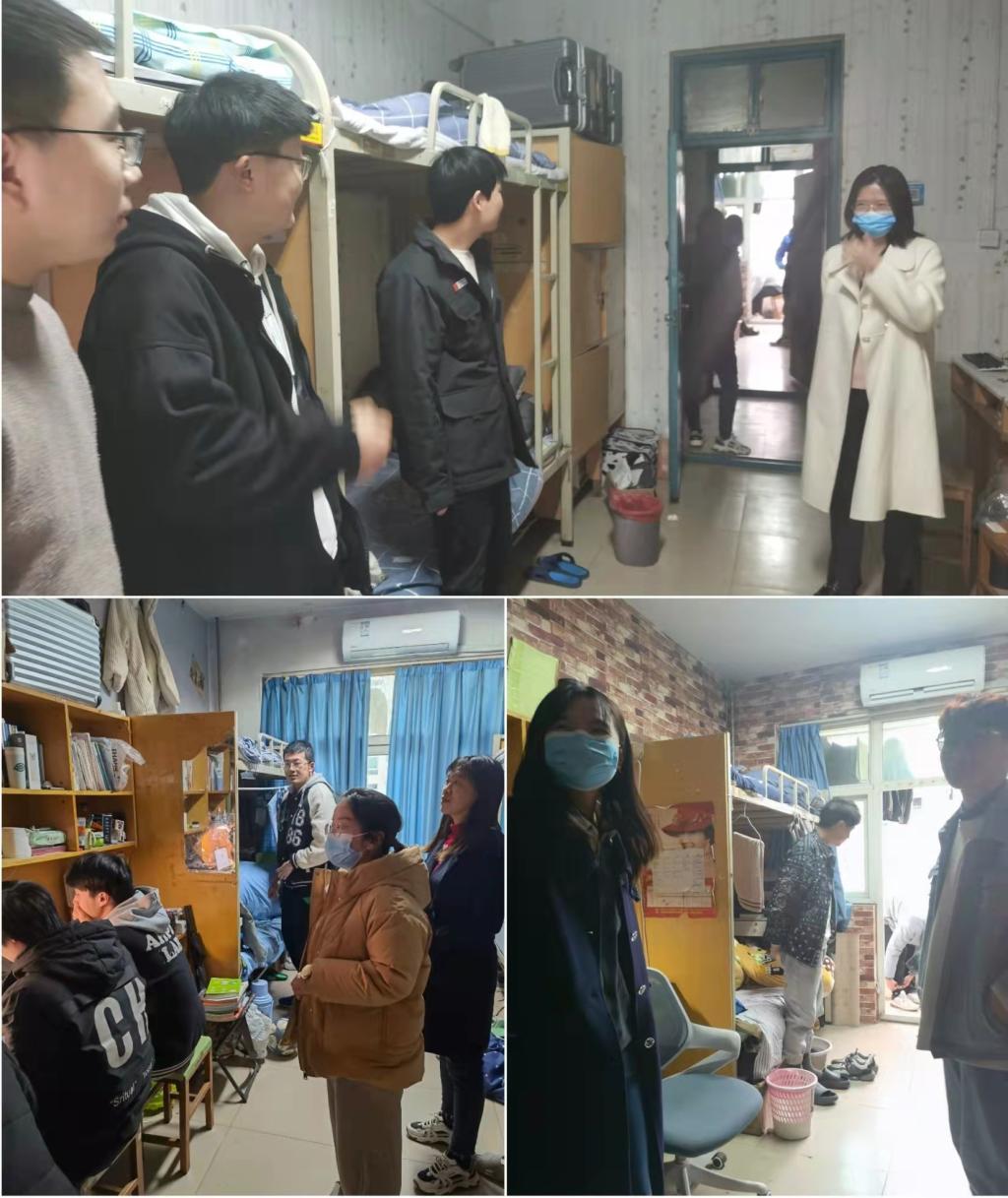 走访过程中,领导老师与同学们进行亲切交流,深入了解学生在校期间的思想状况、学习状态和日常生活状态,提醒同学们要加强疫情防控、注意人身财产安全、用电安全。同时汪书记也着重强调了宿舍卫生问题,主要包括书桌上物品的摆放、床铺的整理、地面整洁度、楼道垃圾堆放等方面。根据学生在校期间宿舍卫生情况,要求各班委、宿舍长高度重视,组织好、落实好各自宿舍内务的整理工作。各班级辅导员也询问并了解学生在校学习生活中遇到的困难,关心学生寒假学习生活和新学期开学的准备情况,鼓励学生在新学期要明确学习方向、合理规划时间,对同学们即将开始的新学期学习给予厚望。