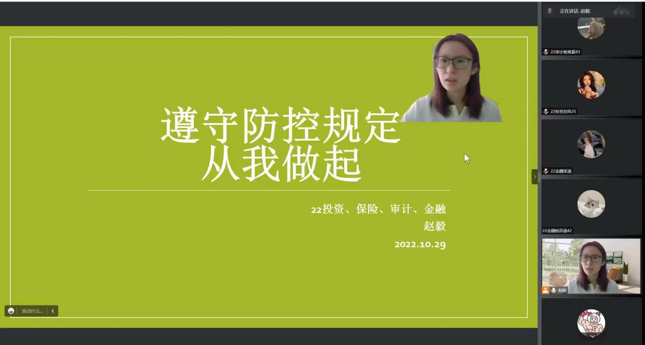 坚定信心战疫情,同舟共济筑防线。目前疫情形势严峻,为进一步落实学校疫情防控政策,加强疫情期间广大学生疫情防控意识和责任担当。pa电子官方网站结合当前疫情防控形势,于10月29日-30日由各班辅导员召开关于疫情防控的线上主题班会。