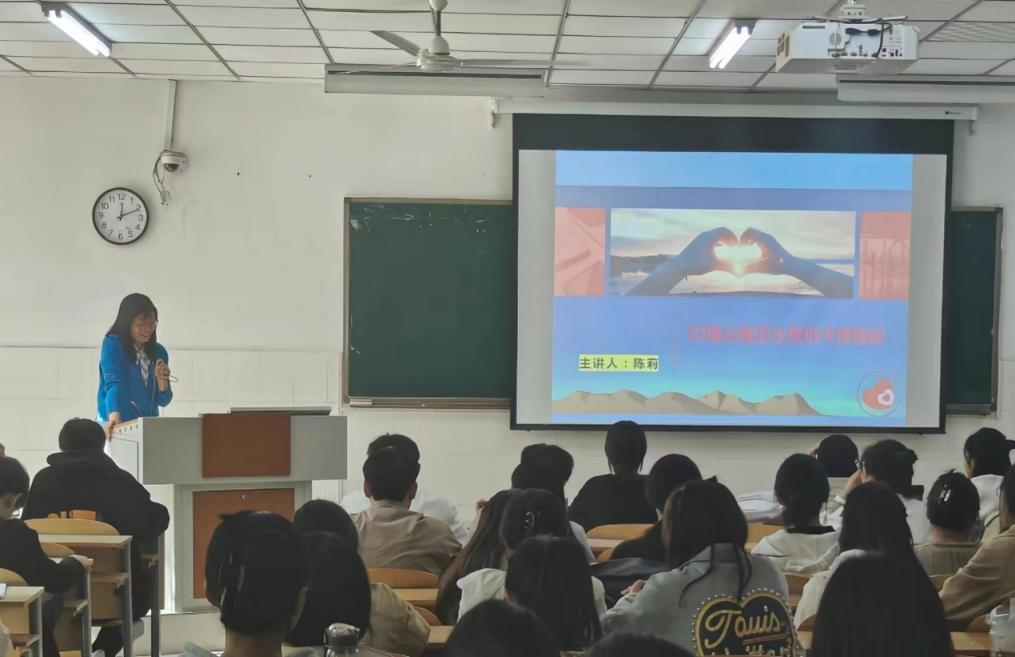 然后,陈莉老师开始向同学们介绍什么是心理危机,并把心理健康水平分为五个等级,以此让同学们对心理健康问题有更加详细的理解。在此基础上,陈老师介绍了心理健康排查应该重点关注的风险点以及一些常见的情绪障碍。