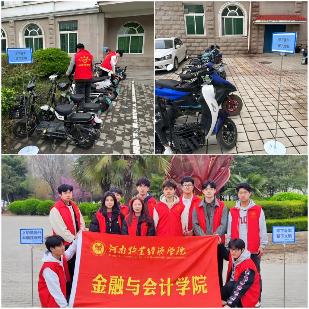 在整理校园内乱停乱放车辆活动中,志愿者对校内教学楼附近、宿舍楼下随意停放的车辆和长时间闲置未挪动的车辆进行规范停放,并对停车习惯不规范的同学进行文明劝导,并在教学楼出口处放置文明提示牌,提醒大家不要随意乱停放车辆。
