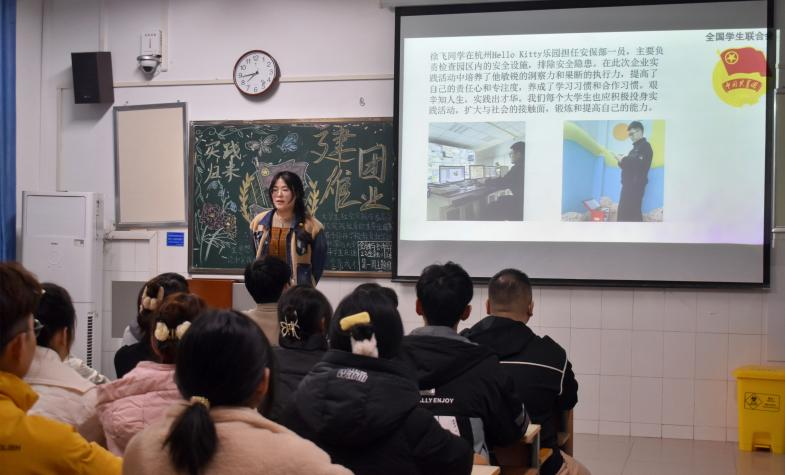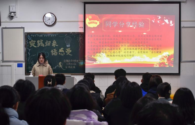 积诚泮群疑,实践激众媮。寒假社会实践活动随着新学期的开始而落下帷幕,为向同学们展示实践活动中优秀的实践范例,同时教育引导同学们在新冠列为“乙类乙管”的背景下,自觉做好“自己健康防护第一人”。pa电子官方网站于2023年2月17日组织各团支部进行了“实践归来话感受”的线下主题团课。