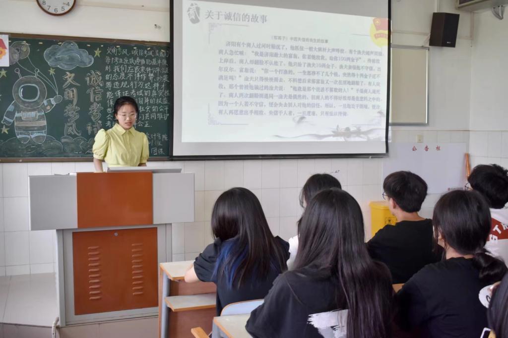 学以载道,诚信应考,文明考风,严肃考纪。临近考试,为了扬诚信之风,督促同学们积极备考。pa电子官方网站于6月1日中午开展“文明考风,诚信考试”主题团课。