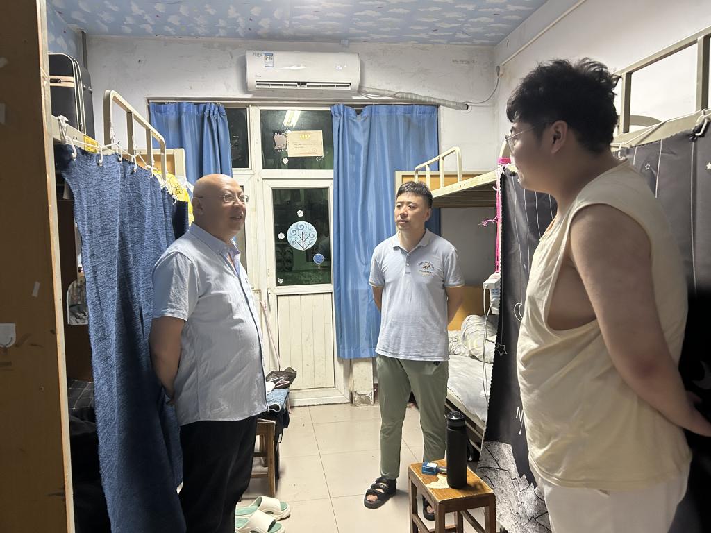 在走访过程中,陈书记、汪书记与同学们亲切交流,了解大家这一个月来在学校的学习和生活情况。陈书记先是肯定了同学们不畏酷暑,刻苦学习的精神,随后鼓励同学们要珍惜复习时间并且持之以恒,同时要规律作息,保证自己的身体健康,也要学会调整心态,注重劳逸结合。在留校复习期间,如果有任何身体或心理上的问题应及时与老师沟通,有关于学习方面的需求也可及时向学院反映。