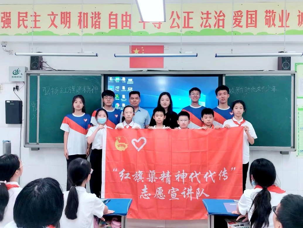 为深入学习宣传贯彻党的二十大精神和习近平总书记视察陕西延安、河南安阳重要讲话精神,根据共青团河南省委员会《关于开展河南省大学生“红旗渠精神代代传”志愿宣讲活动的通知》要求,9月11号下午5点,pa电子官方网站团委副书记顾自卫带领学院红旗渠精神志愿宣讲小队前往惠济区开元路小学开展以“弘扬红旗渠精神,做新时代好少年”为主题的红旗渠精神宣讲活动。