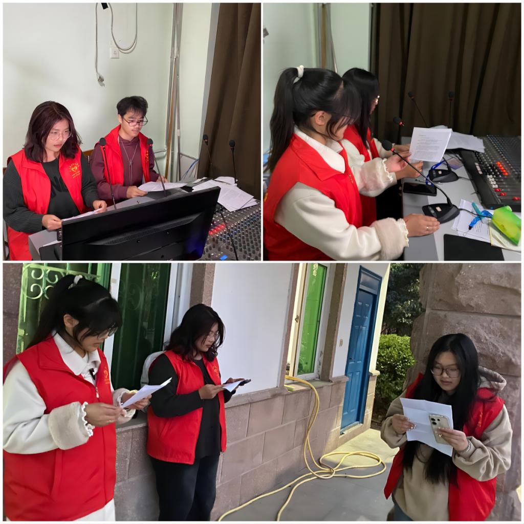 活动前期,在各班组宣委员的宣传下,同学们积极报名,经过线上选拔,由活动负责人选出五位宣讲的志愿者参与校广播站宣讲。活动期间,志愿者们积极到场,在上麦前熟悉宣讲材料,为宣讲做好充分准备。