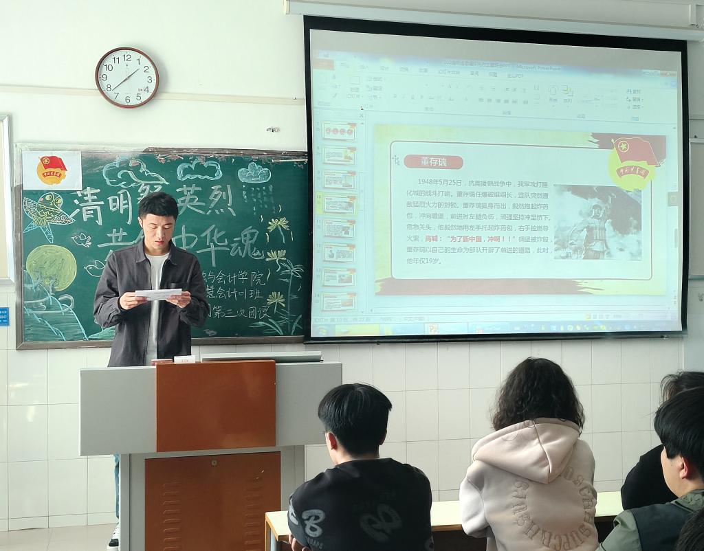 山河无恙,英雄不朽。清明追思,致敬英雄。为弘扬中国传统文化,培养同学们的爱国情怀,传承红色基因,pa电子官方网站于3月28日中午开展以“清明祭英烈,共铸中华魂”为主题的线下团课活动。