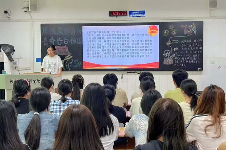 伴随着嘹亮的团歌声,各团支部的团课活动相继展开。首先,各团支书向同学们播放了爱国主义教育的相关影片,通过影片让同学们感受伟大祖国的蓬勃发展。接着,团支书邀请同学们写下有关诗句,用文字表达自己对祖国的热爱与祝福。最后,各团支书邀请同学们分享自己心中对祖国的憧憬,鼓励广大同学拼搏进取,为国奉献。