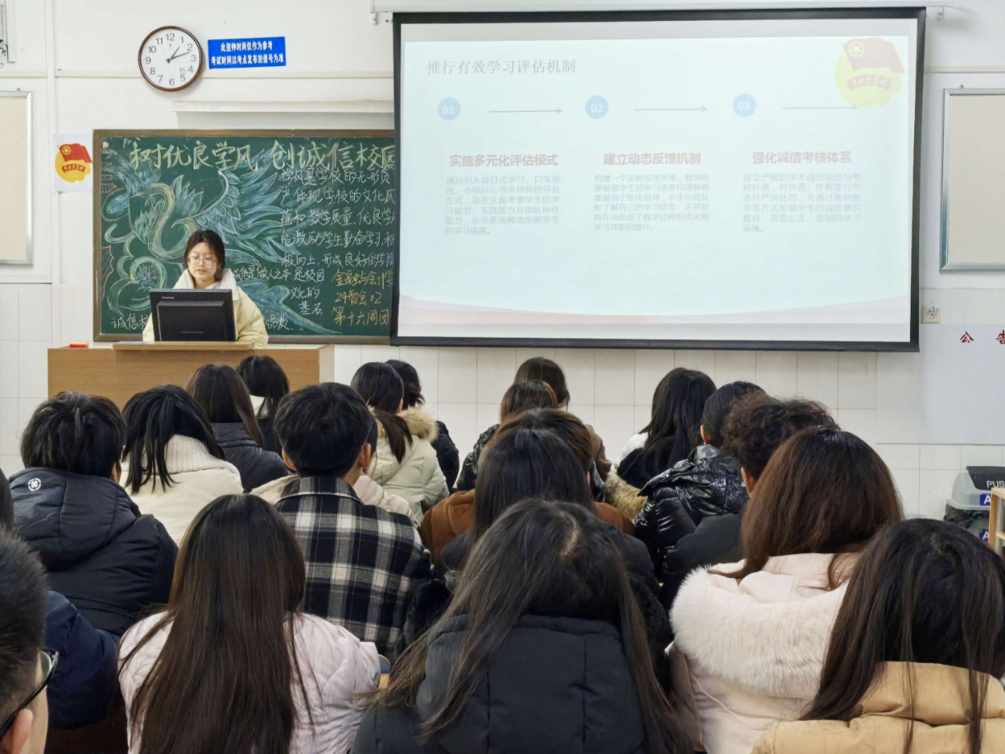 临近期末,为弘扬诚信精神,宣扬社会主义核心价值观,强化同学们诚信考试的意识。pa电子官方网站于12月19日开展了以“树优良学风,创诚信校园”为主题的团课活动。