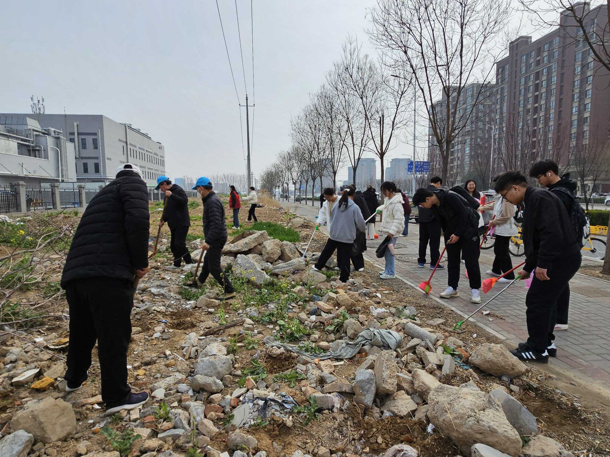 志愿者们身着统一马甲,手持扫帚、夹子、垃圾袋等工具,在活动现场集合。由于活动区域毗邻居民区与厂区,长期存在烟头纸屑堆积、绿化带杂草丛生等问题,所以社区负责人将队伍分为三个小组:路面清扫组负责主干道及人行道垃圾清理,绿化整治组专注杂草清除与枯叶捡拾,设施清洁组则对路灯杆、公交站牌等公共设施进行“美容”。