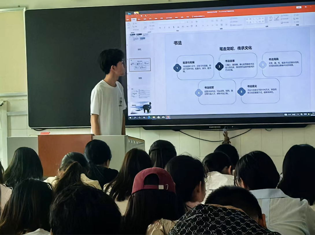 课间的教室里,同学们聚焦非物质文化遗产与经典典籍等,分享内容精彩纷呈。一位同学借助图文资料,详细介绍了糖画这项指尖技艺背后的历史传承与匠人匠心;另一位同学则分享了书法典册,从碑帖笔法谈到文人风骨,解读传统书法艺术的美学价值。每一次分享都展现了同学们对传统文化的深入思考和独特见解,现场交流氛围热烈。