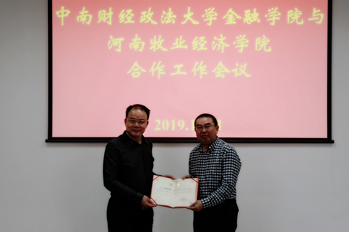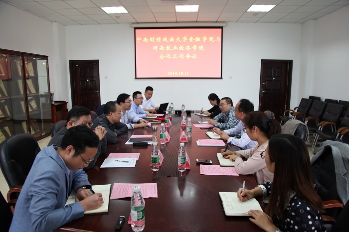 2019年10月11,pa电子官方网站院长黄良杰、副院长贾宪军一行四人赴中南财经政法大学金融学院交流学习。中南财经政法大学金融学院党委书记江克宁、副院长胡宏兵、培训部主任颜嘉川、教授吕勇斌、孙宪明等出席了本次交流会。