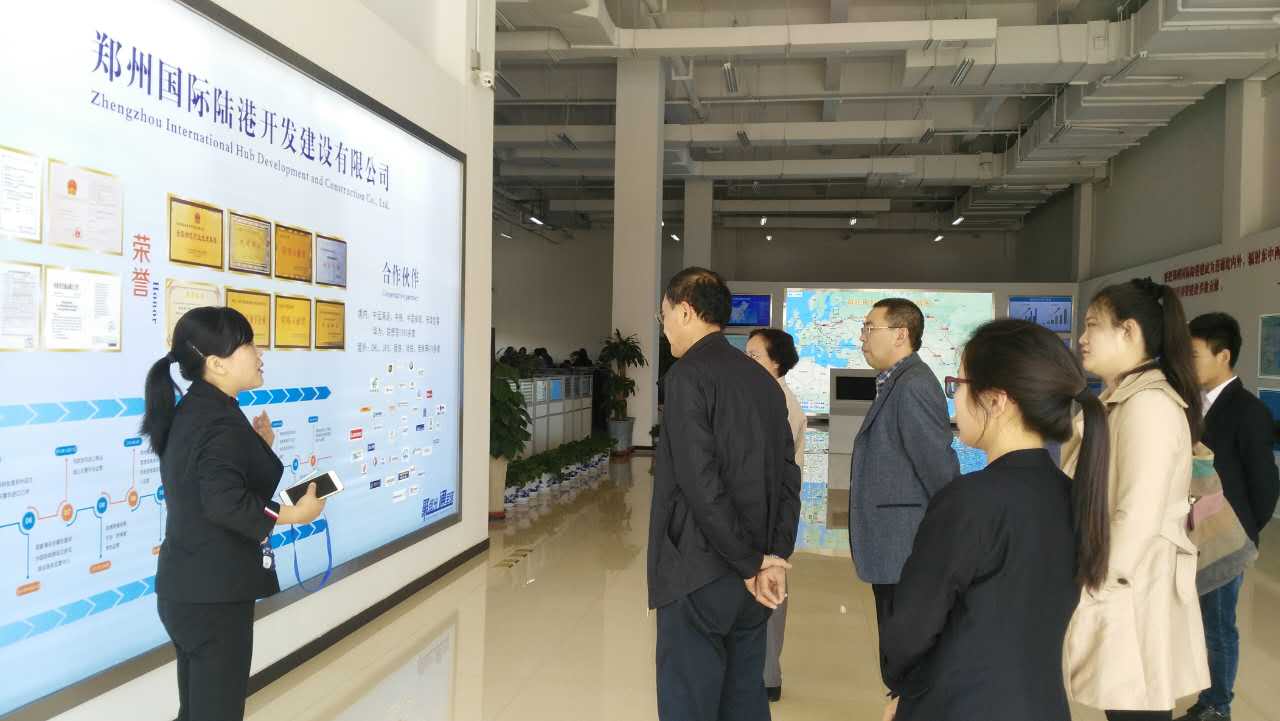 郑州国际陆港开发有限公司邓文静副总经理对该公司的发展沿革、国内多式联运集疏网络、冷链物流模式、恒温仓储、技术研发中心、班列开行等公司业务运营情况进行了详细介绍。在该公司部门领导的陪同下,邓经理带领一行领导参观了郑欧班列进口商品体验中心、恒温仓储、技术研发中心。之后,在召开的指导研讨会议中,黄良杰院长对该公司的财务公司的创建、财务运营等相关问题提出了指导意见,贾宪军院长就该公司在收汇结汇过程中与商业银行合作建立人民币资金池问题提出了有益建议,获得了该公司的高度认可和好评。