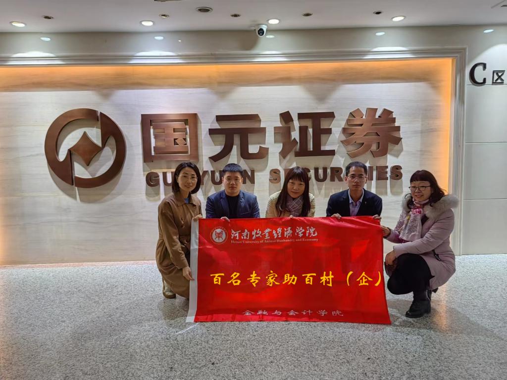 2023年11月17日,pa电子官方网站投资学教研室杨峰、邢雁飞和索静三位老师,走进国元证券股份有限公司河南分公司进行访企拓岗促就业活动。此次教研室走访企业,旨在了解企业人才需求、提升专业人才培养质量、拓展毕业生就业渠道和资源。