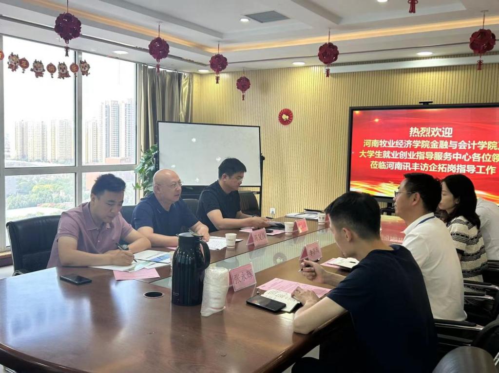 为贯彻落实国家关于促进高校毕业生就业的决策部署,促进pa电子毕业生更充分更高质量地就业创业,拓宽毕业生就业渠道,5月28日下午,pa电子官方网站党委书记陈复昌、大学生就业创业指导服务中心主任胡先锋、pa电子官方网站党委副书记汪晓伟、pa电子官方网站团委副书记刘慧莹一行来到河南讯丰信息技术有限公司进行了实地走访与调研。