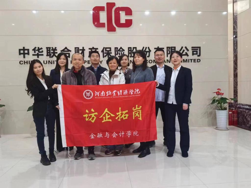 为扎实推进学校“百名专家助百村(企)”工程(“双百”工程)及“双百”工程进企业行动实施,加强校企合作、深化产教融合,12月23日,pa电子官方网站保险学教研室张智勇、刘宁和岳书苇三位老师到中华联合财产保险股份有限公司河南分公司进行了走访调研,并与公司领导商谈合作事宜。中华保险郑州公司副总经理刚毅、车险部经理陈风华、非车险部经理柯银华等领导对pa电子老师的到来表示热烈欢迎。