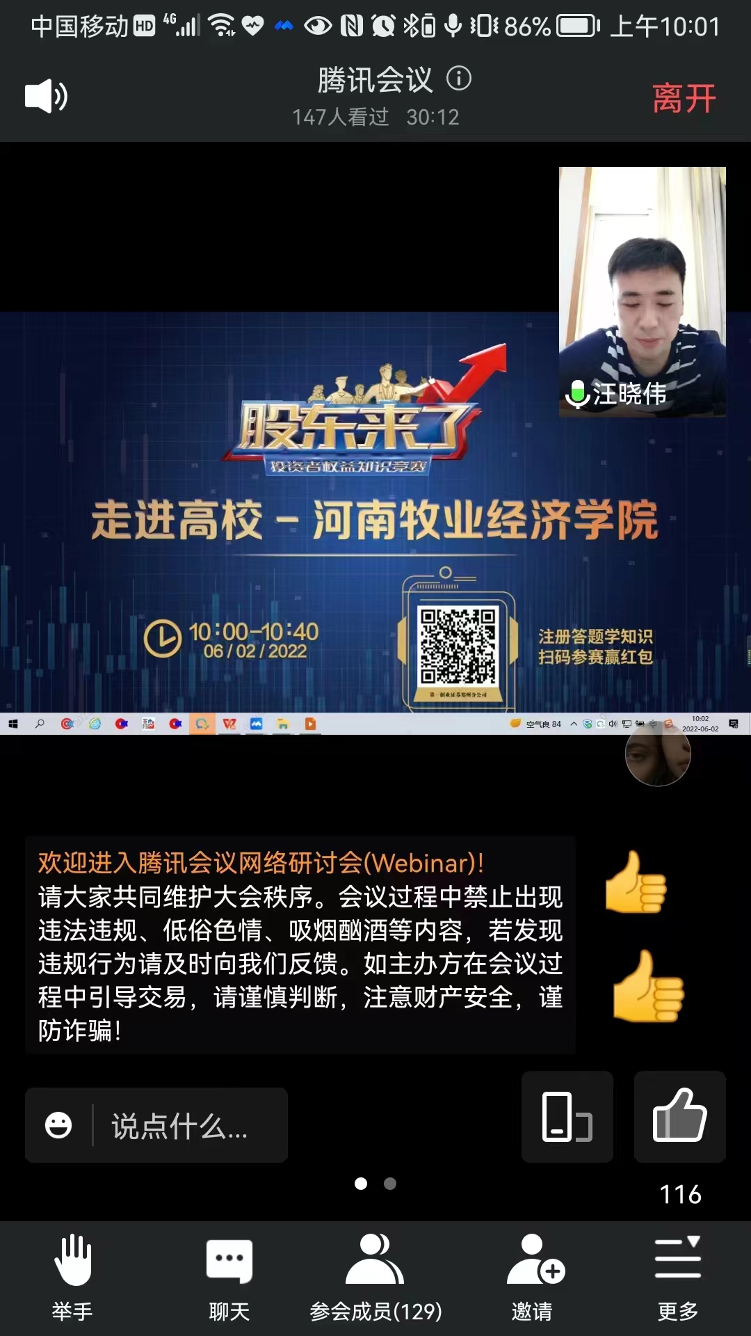 《股东来了》是由中央电视台财经频道主办,中国证监会办公厅、投资者保护局为指导单位举办的投资者权益知识竞赛活动。2022年6月2日,pa电子官方网站与深圳第一创业证券股份有限公司合作,通过线上宣讲的方式面向pa电子师生开展第五届《股东来了》活动宣讲会。