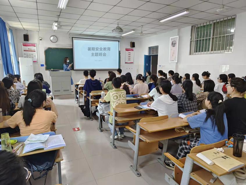 本次主题班会围绕疫情防控要求、暑期人身安全、防诈骗财产安全三部分展开。首先,各年级辅导员强调同学们在暑假期间要严格遵守属地的疫情防控要求,号召同学们非必要不外出、减少流动、少聚集,严禁前往中、高风险地区,外出要规范佩戴口罩,每天坚持今日校园健康打卡,上报个人健康状况及位置移动情况,严格落实身体健康日常报备。随后,结合相关视频资料,辅导员老师从交通安全教育、用电安全教育、防溺水教育等方面为同学们科普人身安全教育知识,教育同学们关爱生命,敬畏生命。最后,通过回顾近期发生在同学们身边的网络电信诈骗案件,向同学们介绍了常见的网络电信诈骗的类型,揭批诈骗手法,进行防骗提示,让反诈骗意识入脑入心。